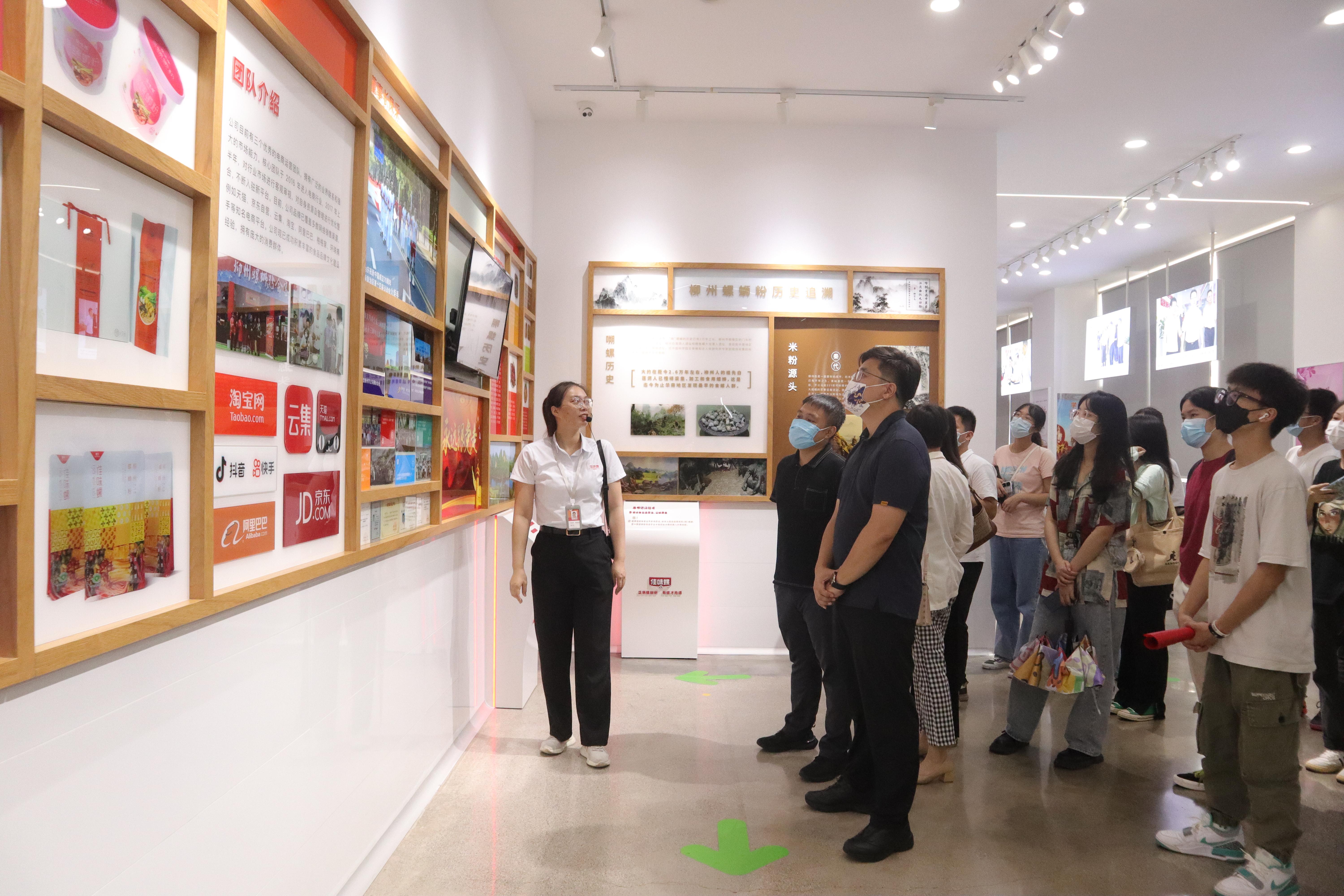 在简要了解螺蛳粉产业的发展状况后,讲解员带领大家参观善元工作车间,加工、检验、包装、直播卖货……大家不仅具体了解螺蛳粉的生产、销售情况,更加理解“小米粉、大产业”的深刻内涵,柳州市螺蛳粉产业化、规模化、品牌化发展,打通农业、食品工业、电子商务等全产业链,创造就业岗位30多万个,解决很多人的就业问题。头一次从课堂走向生产实践,也让实践团学生对于生产企业有了真实的感受。